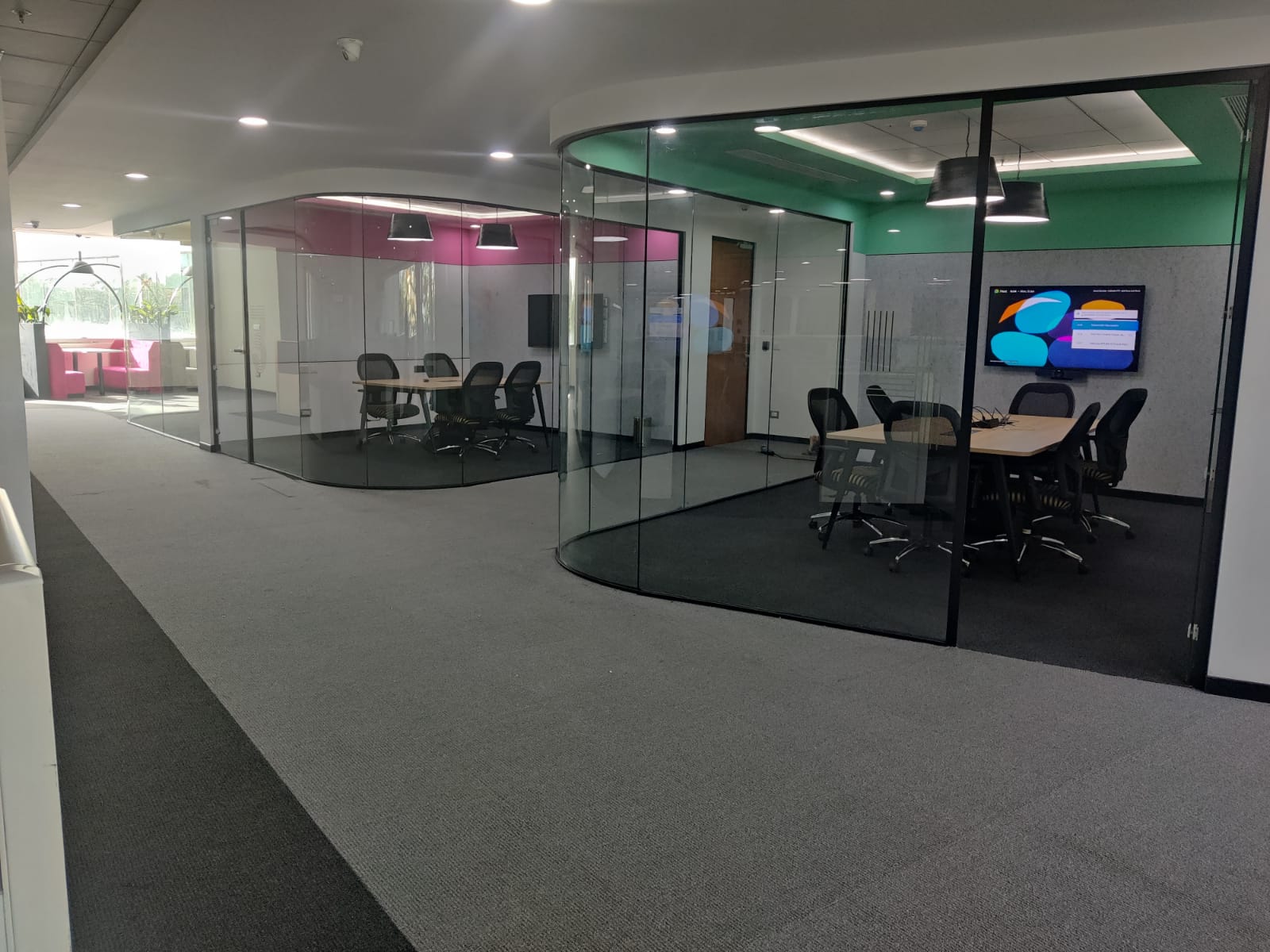 The curved corner is chosen by the architects not only because of its graceful shapes, but also because of the space saving and thus the increase in the throughput width. The curved partitions help save space and increase the throughput where a normal corner would not come out.